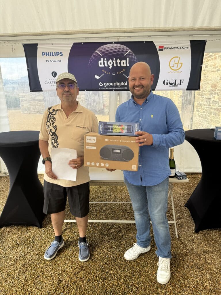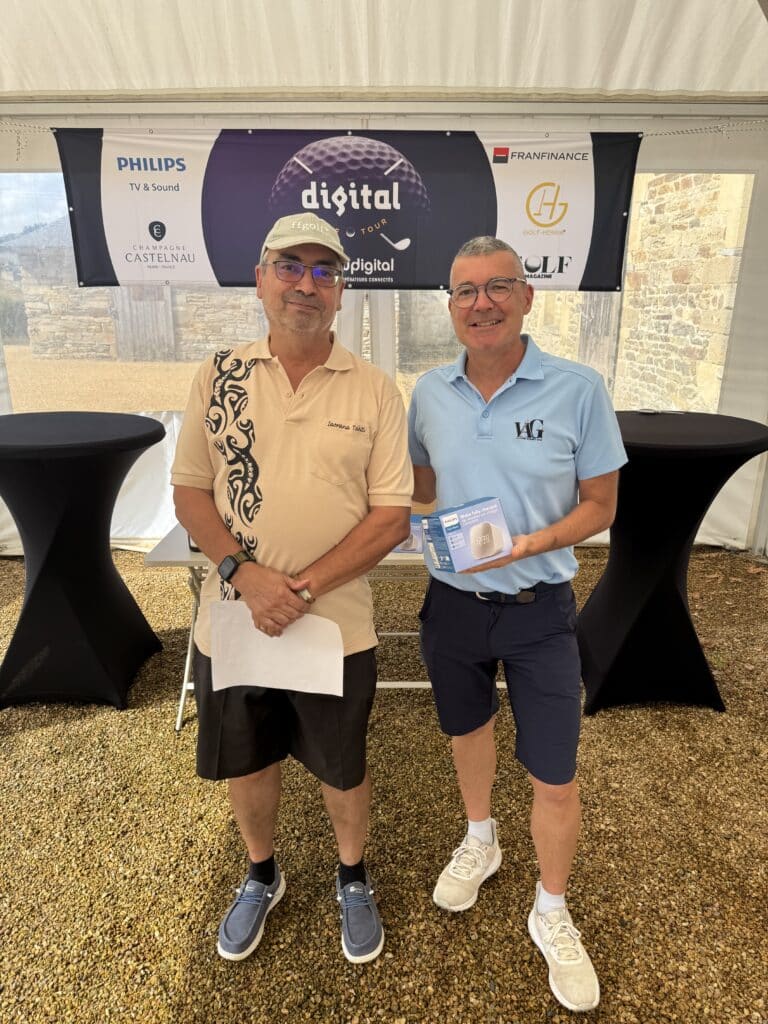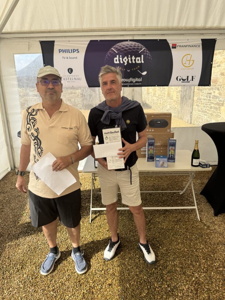 Ce dimanche 6 juillet, notre parcours a accueilli une étape de la Digital Golf Tour, une compétition marquée par une météo capricieuse mais un esprit sportif exemplaire. Les averses ont accompagné les joueurs tout au long de la partie, mettant à l’épreuve leur concentration et leur détermination. Heureusement, le soleil a fait son apparition à l’heure de la remise des prix, illuminant les sourires des lauréats et des participants.